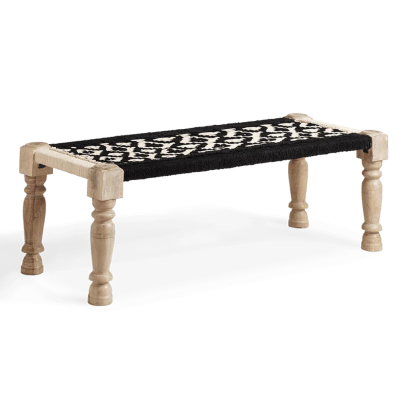 Black And Natural Rope Charpai Bench