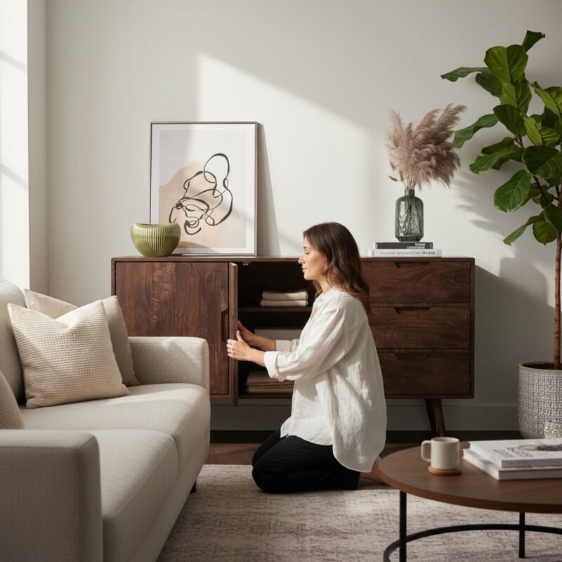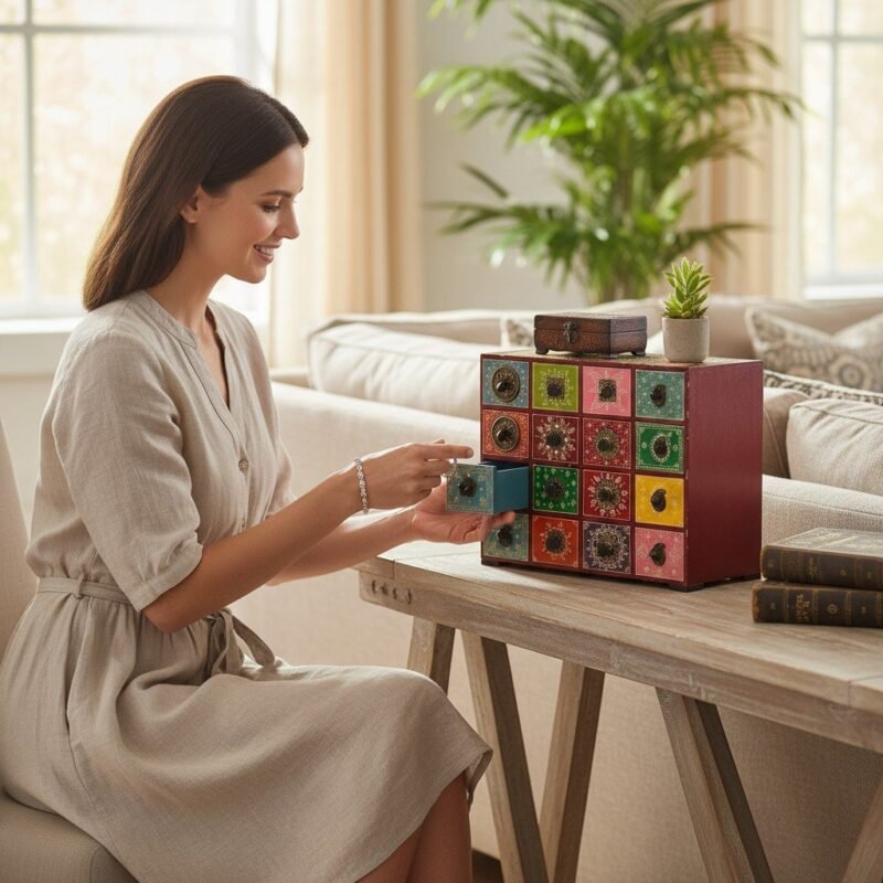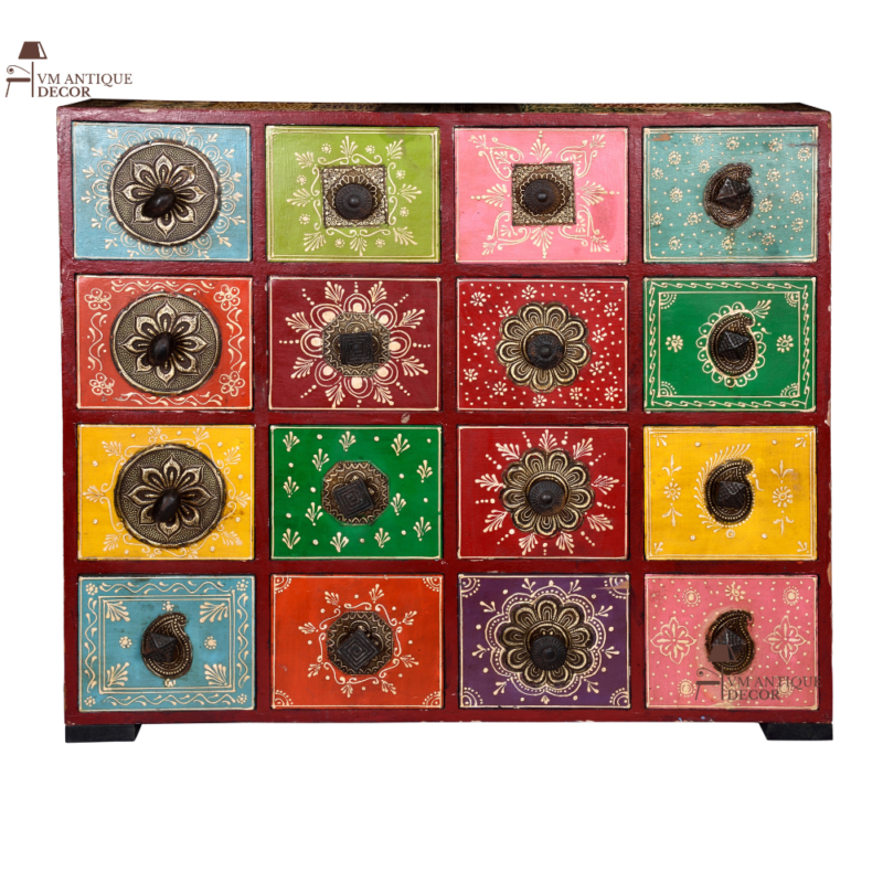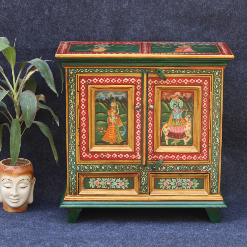 Hand Painted Wooden Cabinet Storage for Living Room