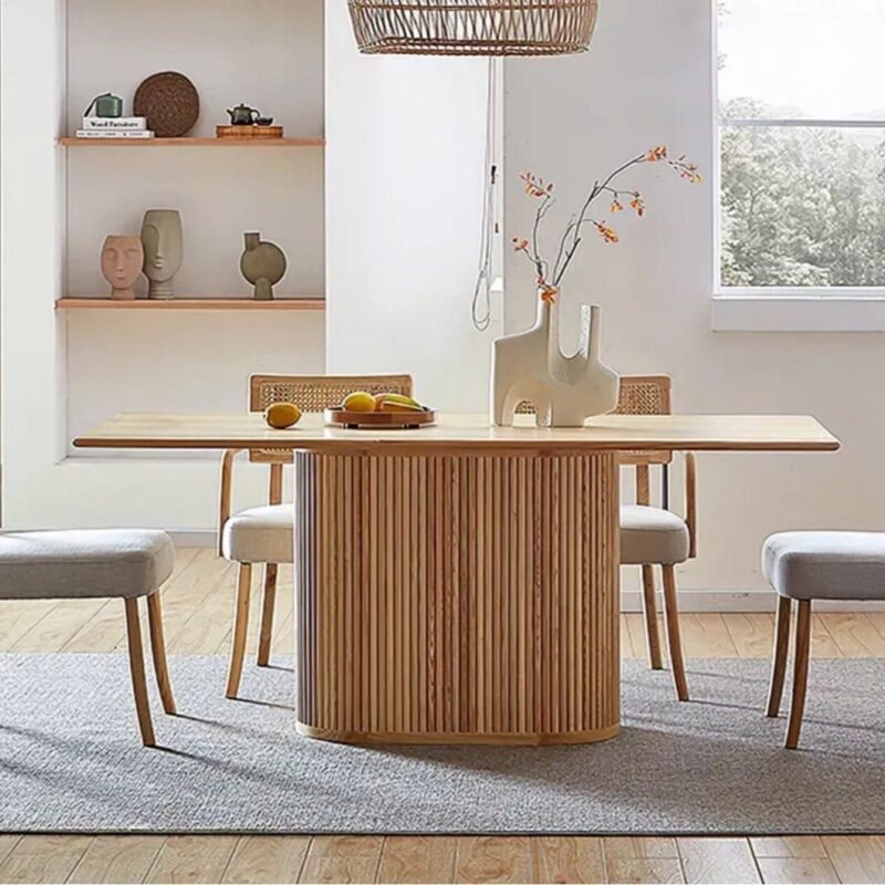 Modern Fluted Base Wooden Dining Table