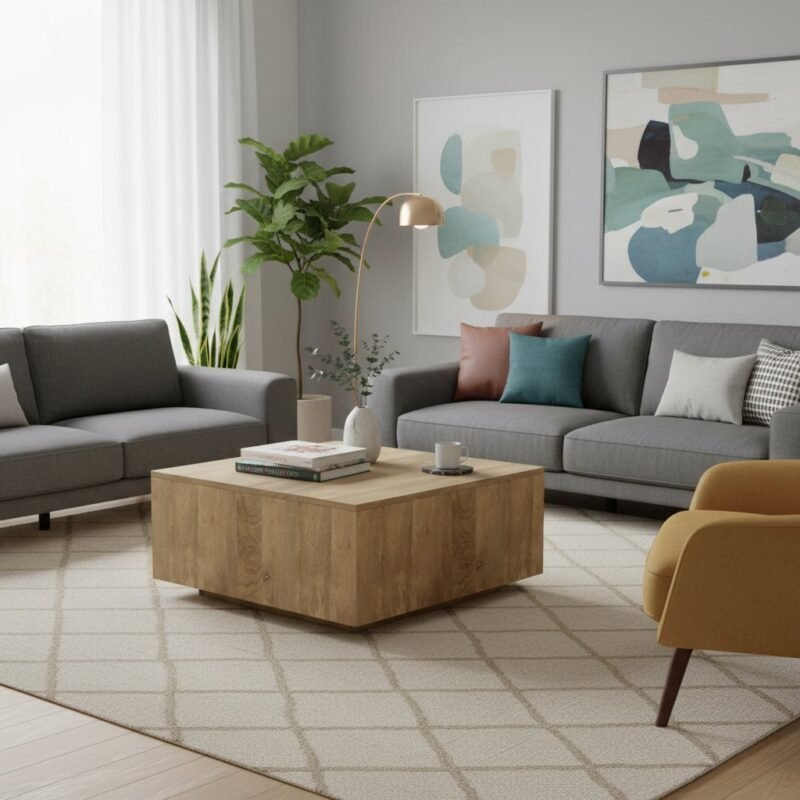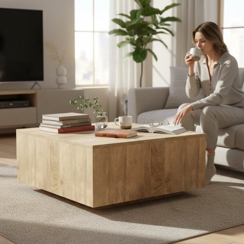 Solid Wood Square Coffee Table for Living Room