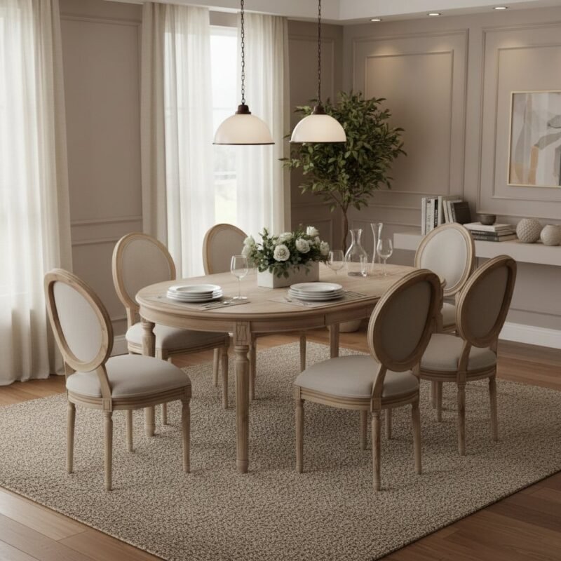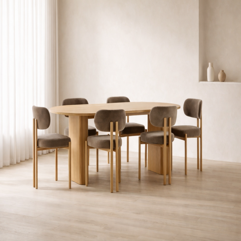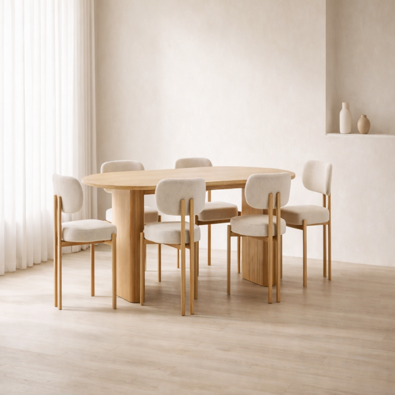 Wooden Oval Dining Table with 6 Chair