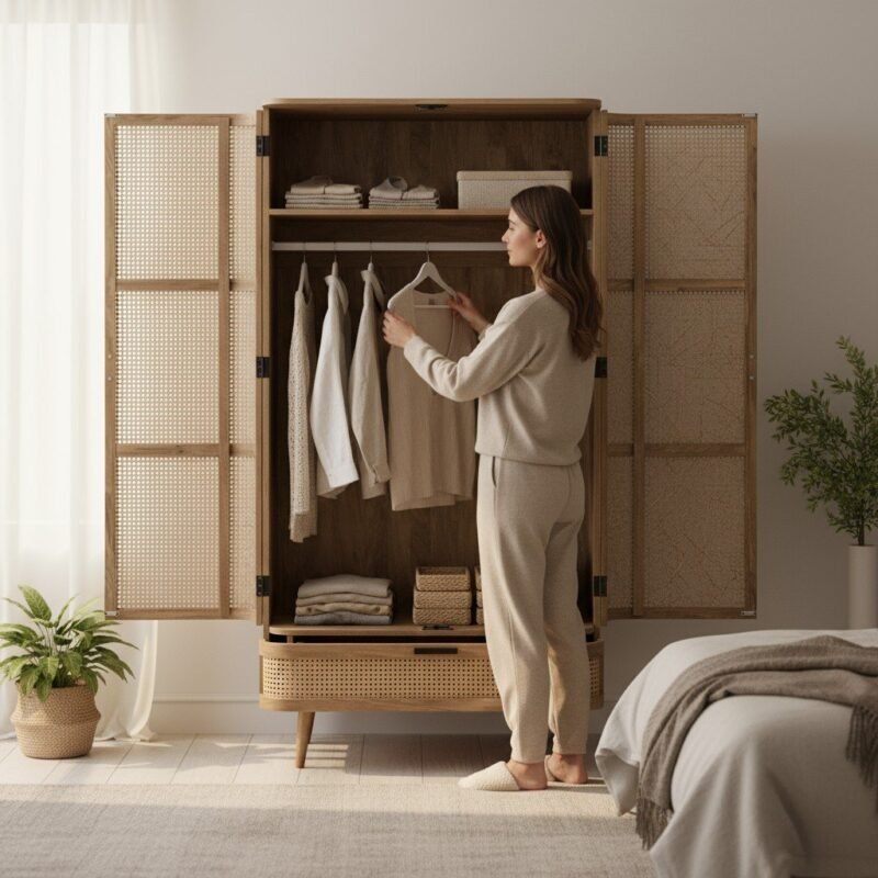 Wooden Cupboard Storage Cane