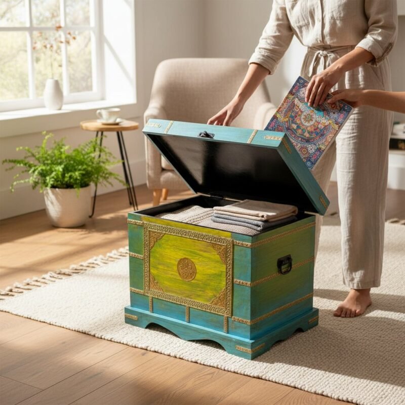 Wooden Painted Brass Trunk Storage Box