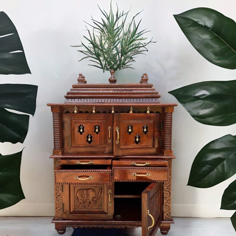 Solid Wood Pooja Mandir With Beautiful Art Work