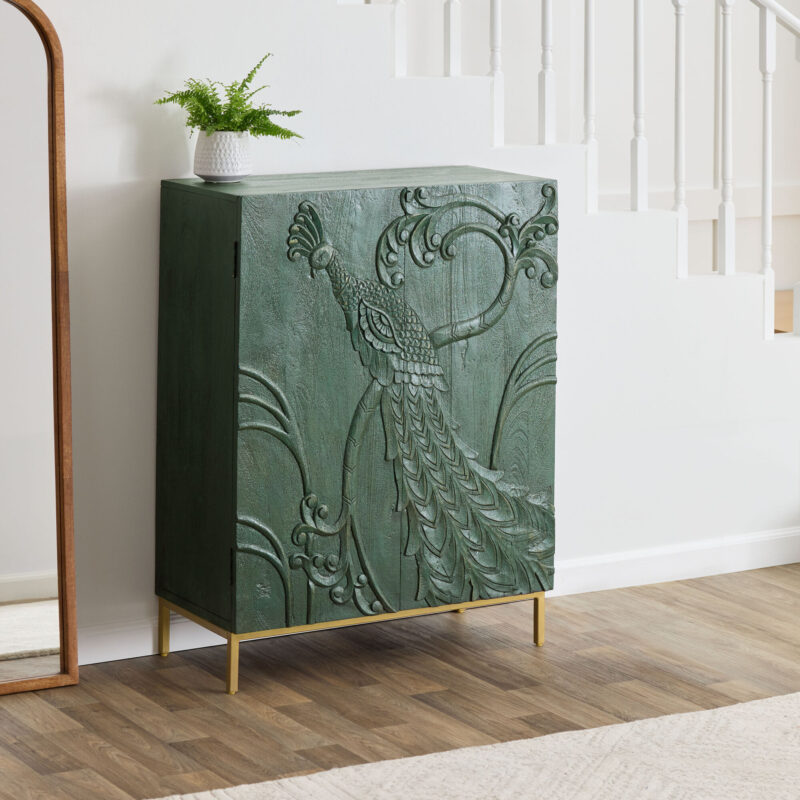 Indian Peacock Painted Wooden Cupboard | Sideboard , Cabinet