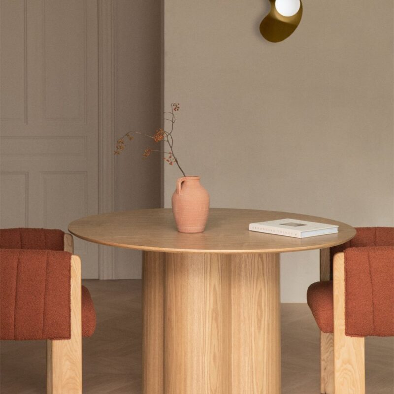 Transform your dining space with this elegant round dining table, crafted in a light natural wood finish that brings warmth, balance, and Scandinavian-inspired simplicity to any modern home. Its sculptural column base and smooth circular top create a calming, contemporary centerpiece—ideal for intimate meals, stylish gatherings, or minimalist interior settings. This table seamlessly blends functionality with refined design, making it a timeless addition to your modern living room or dining area.