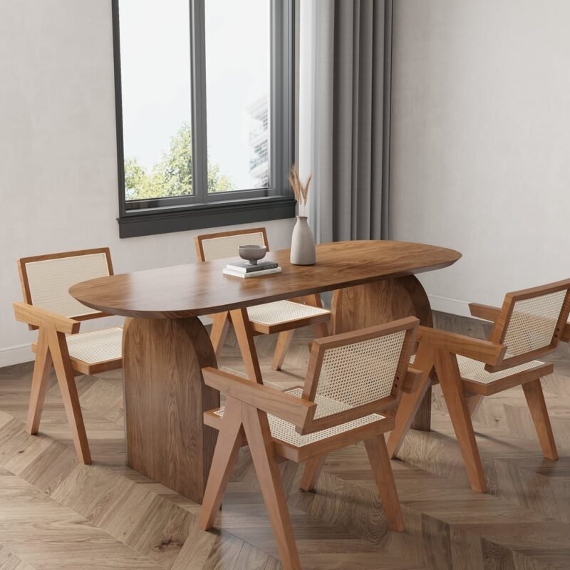 Wooden Walnut Cane Dining Table With 4 Chair