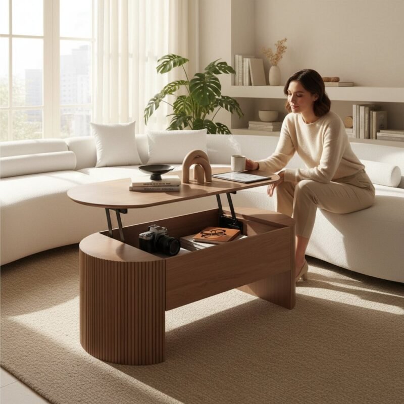 Wooden Walnut Lift-Top Storage Coffee Table