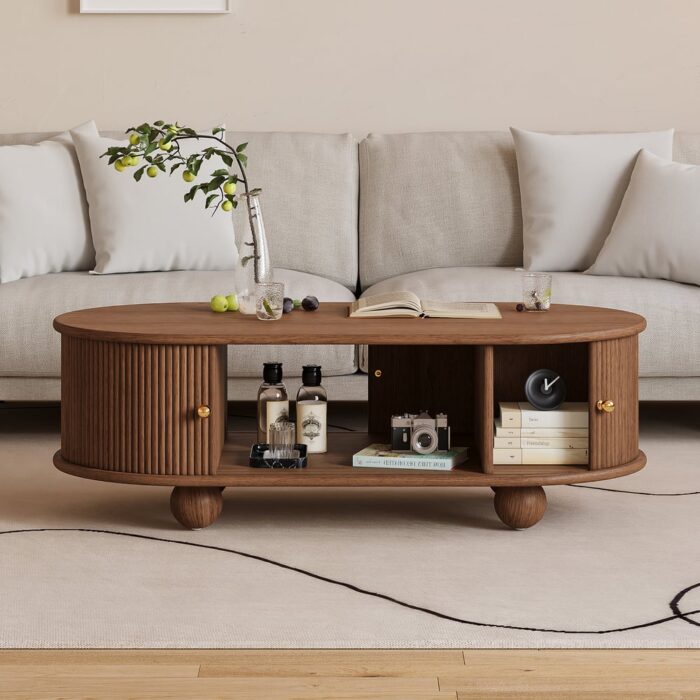 Wooden Oval Rolling-Front Coffee Table