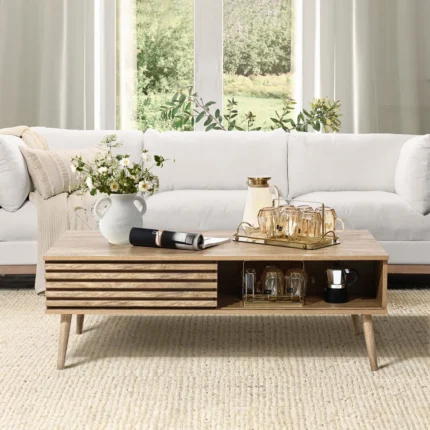 ✅ Features: Lift-Top Tabletop, Large Hidden Storage, Ribbed Design, Sturdy Wooden Legs