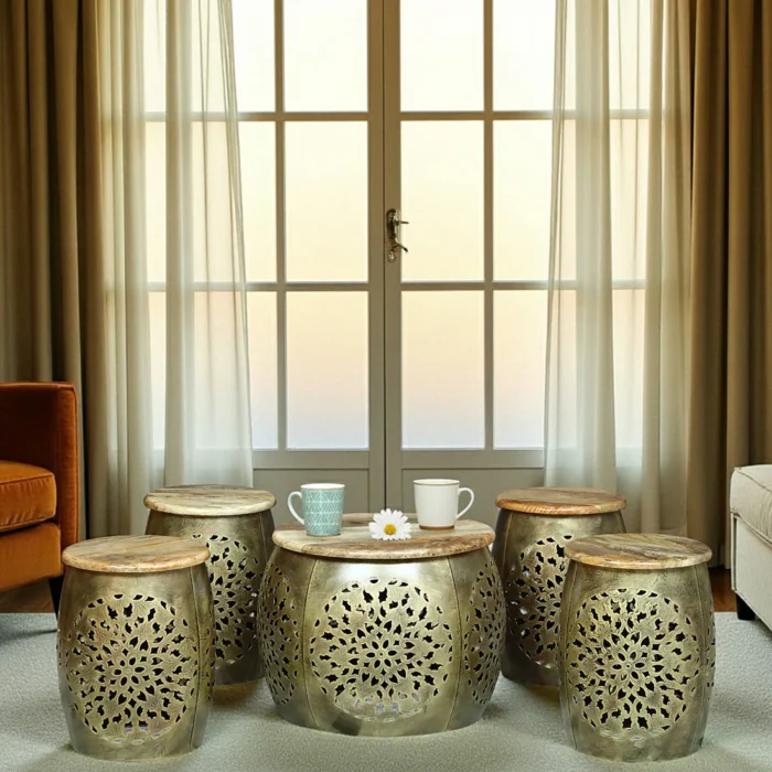 Ethnic Floral Design Nesting Coffee Table Set – Set of 5