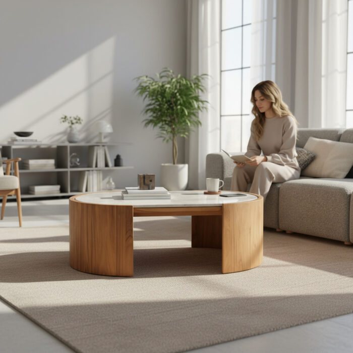 Solid Wood Round Coffee Table for Living Room