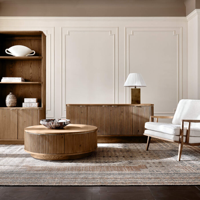 Modern Wooden Sideboard with Ribbed Doors Drawers
