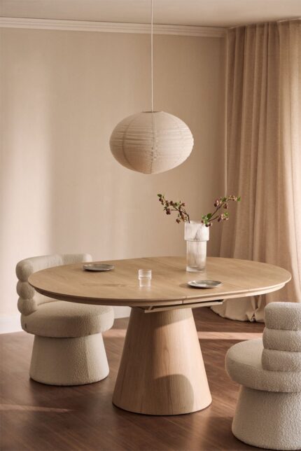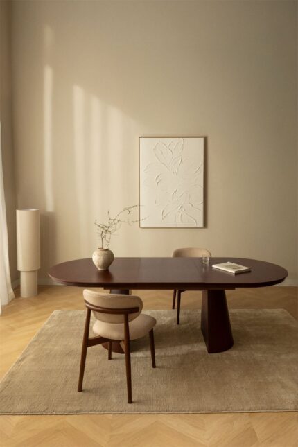 Elevate your dining space with this beautifully crafted oval dining table, designed with a sleek tapered pedestal base and a smooth, natural wood finish. Its sculptural silhouette adds a touch of modern sophistication, while the spacious oval top creates a warm and welcoming setting for family meals, festive gatherings, or stylish dinner parties. Perfect for contemporary, Scandinavian, and minimalist interiors, this table becomes an eye-catching centerpiece in any home.