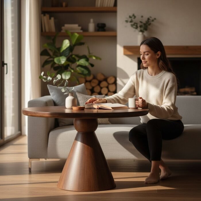 Material : White marble top with natural wooden pedestal base.