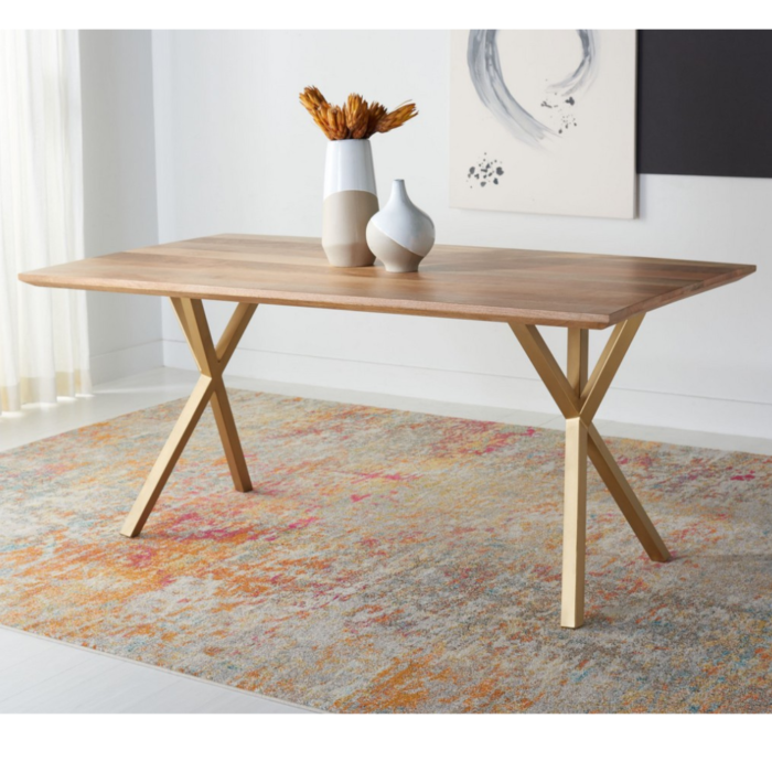 Solid Wood Dining Table with Metal Cross Legs