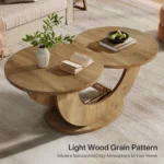 Wooden Round Coffee Table with Shelf