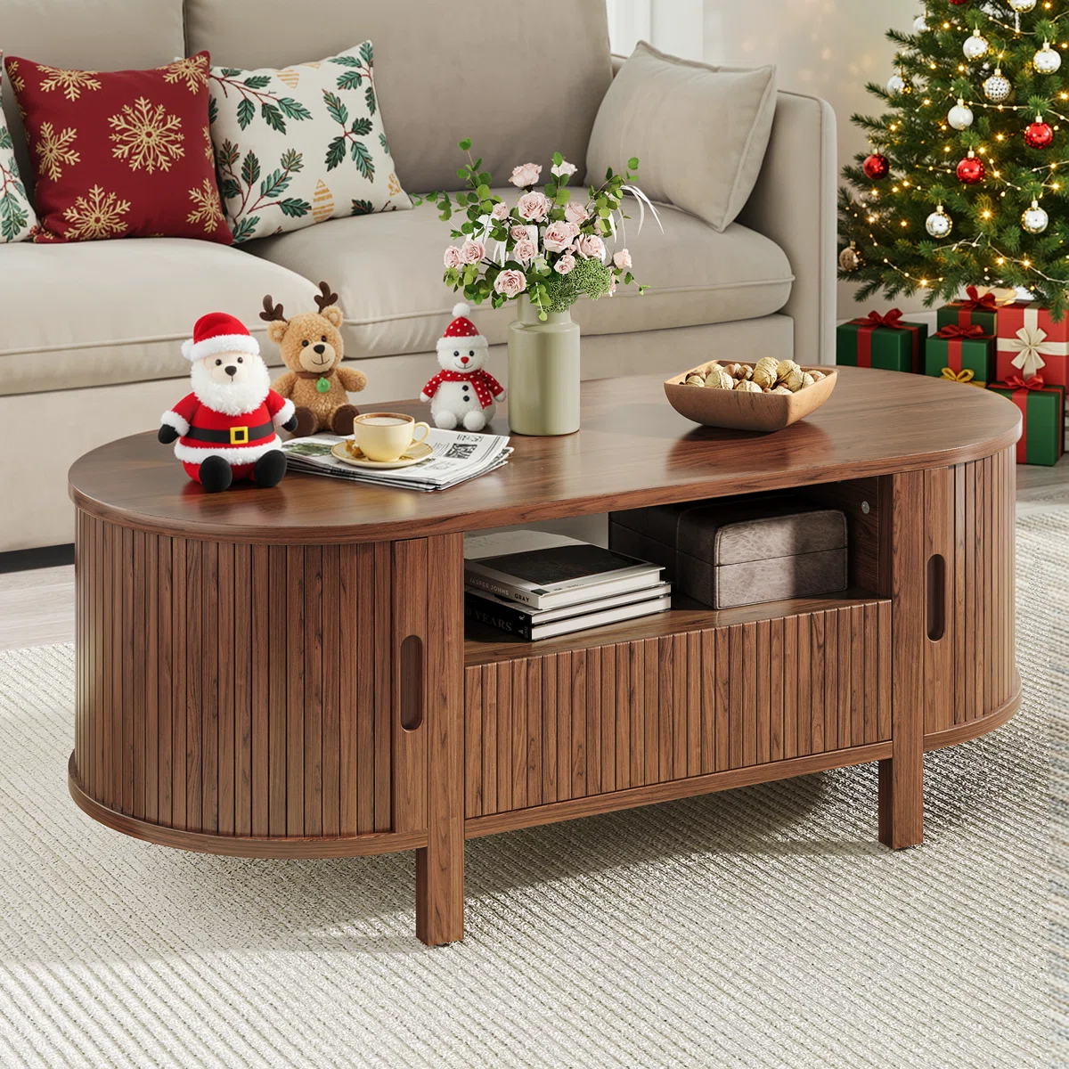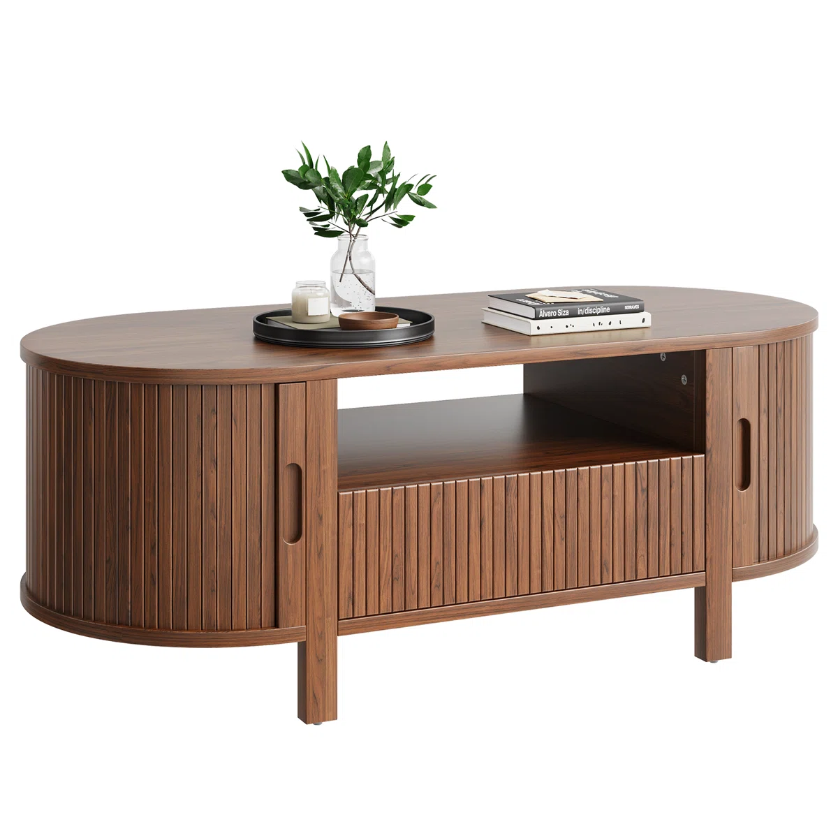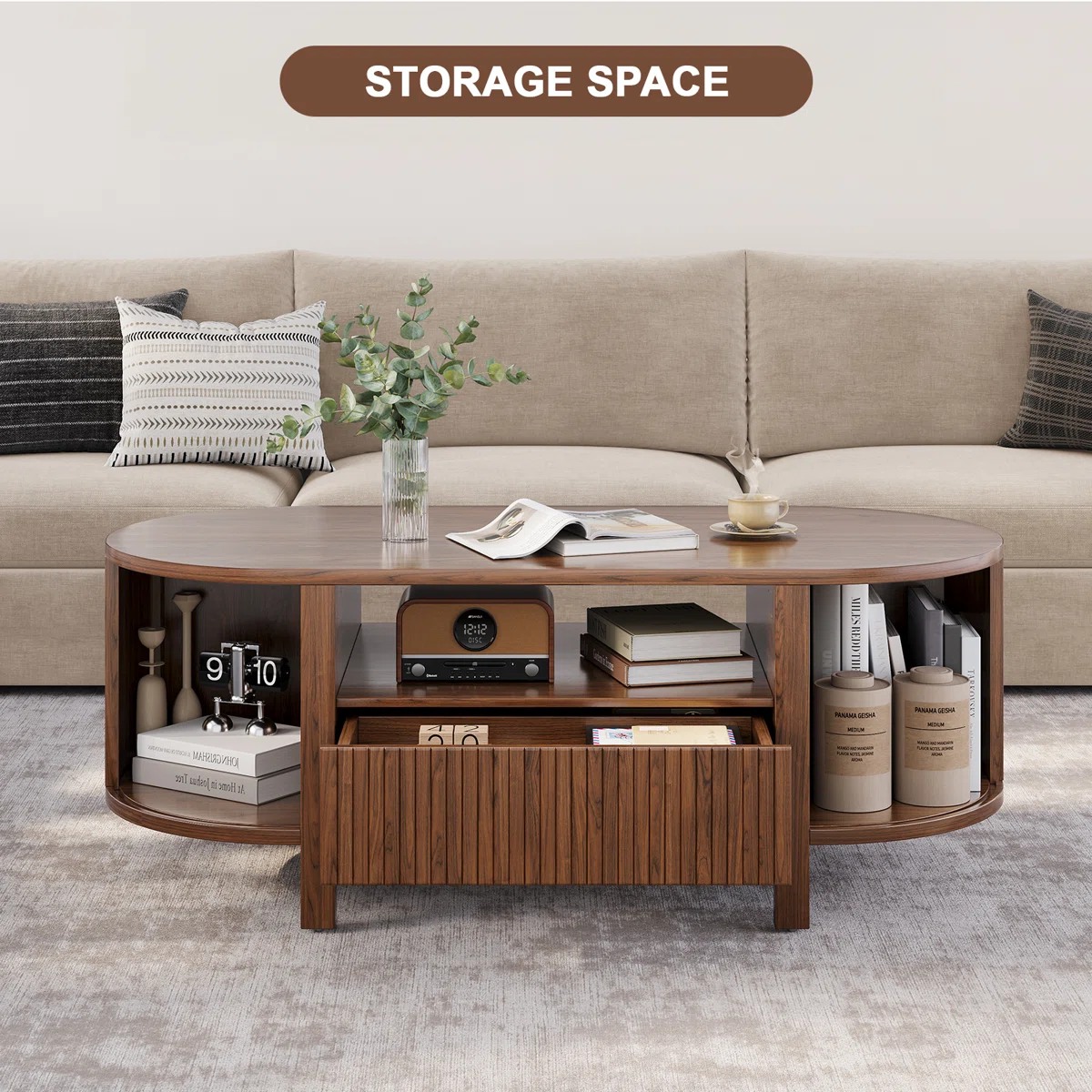 45.27" Oval Coffee Table With Storage
