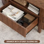 Colour – Walnut Size-17.72” H x 47.24” W x 21.65” D Wipe clean with soft cloth. Avoid chemical cleaners Assembly required Made in India