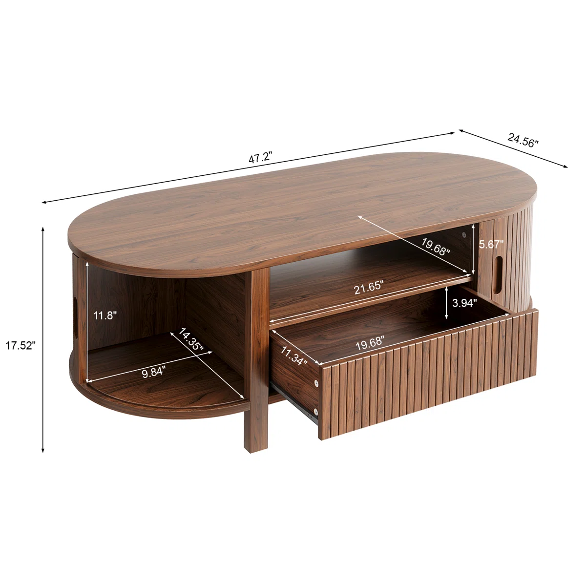 47.2” Oval Coffee Table With Storage