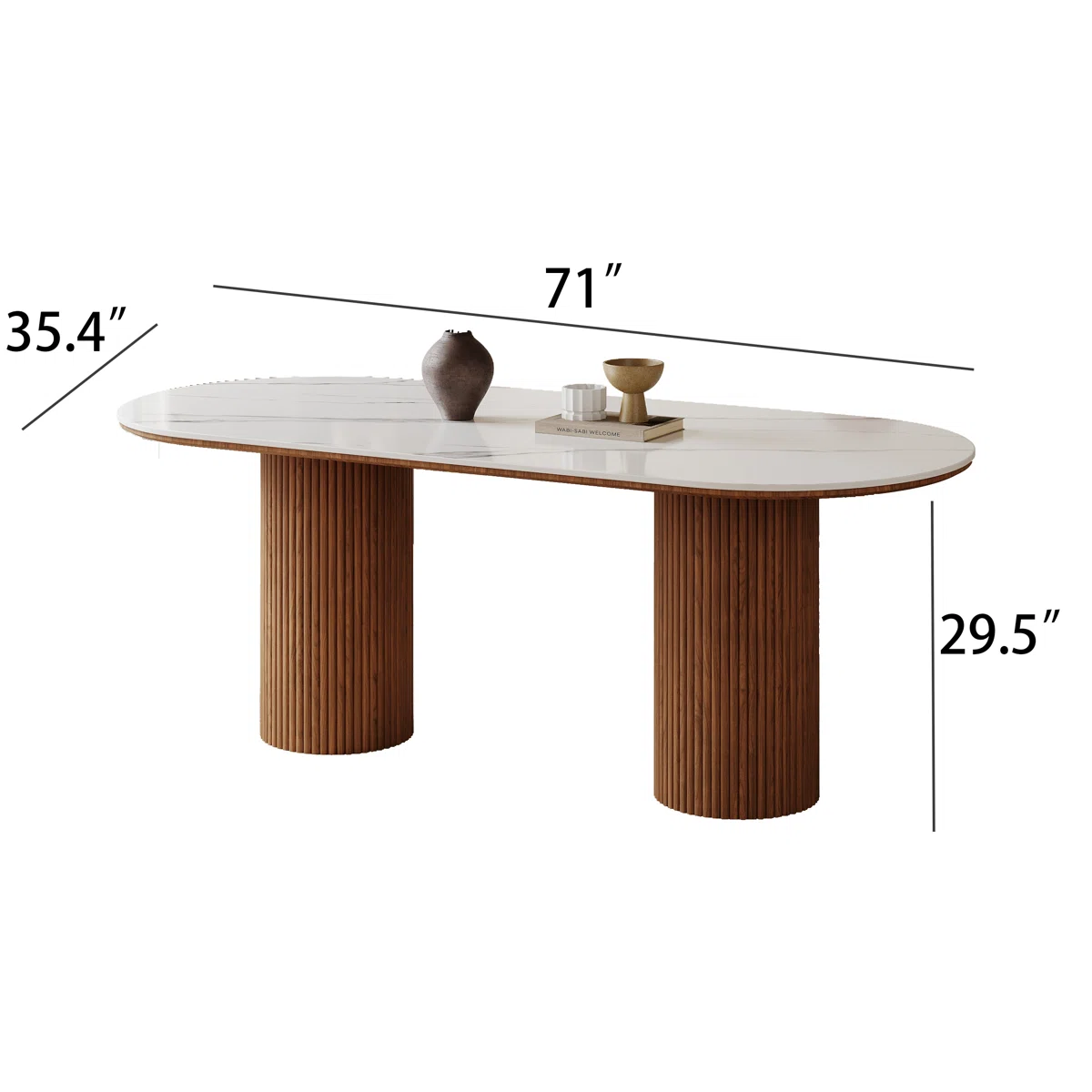 Home Dining Table 70.8” Stone Top Solid Wood Base Oval Modern Dining Table
