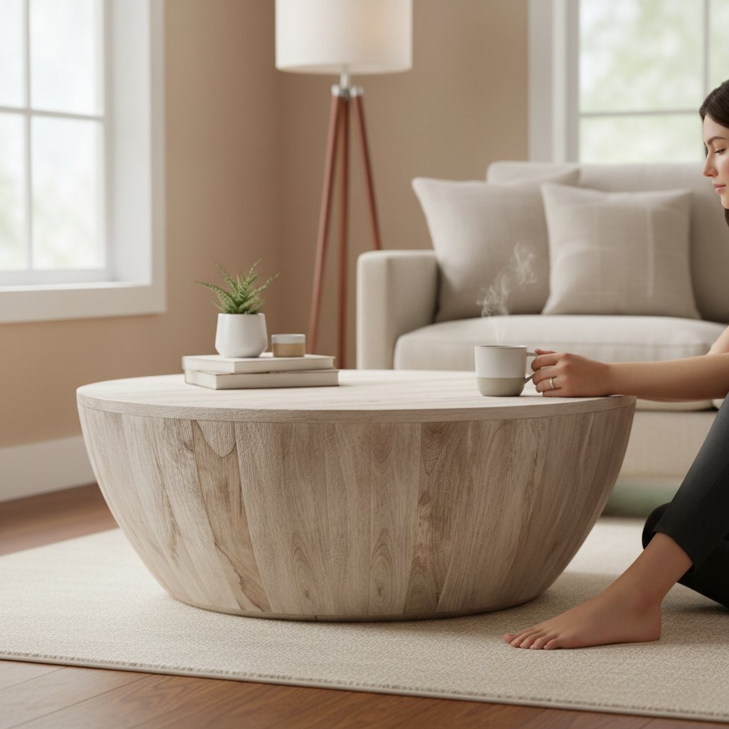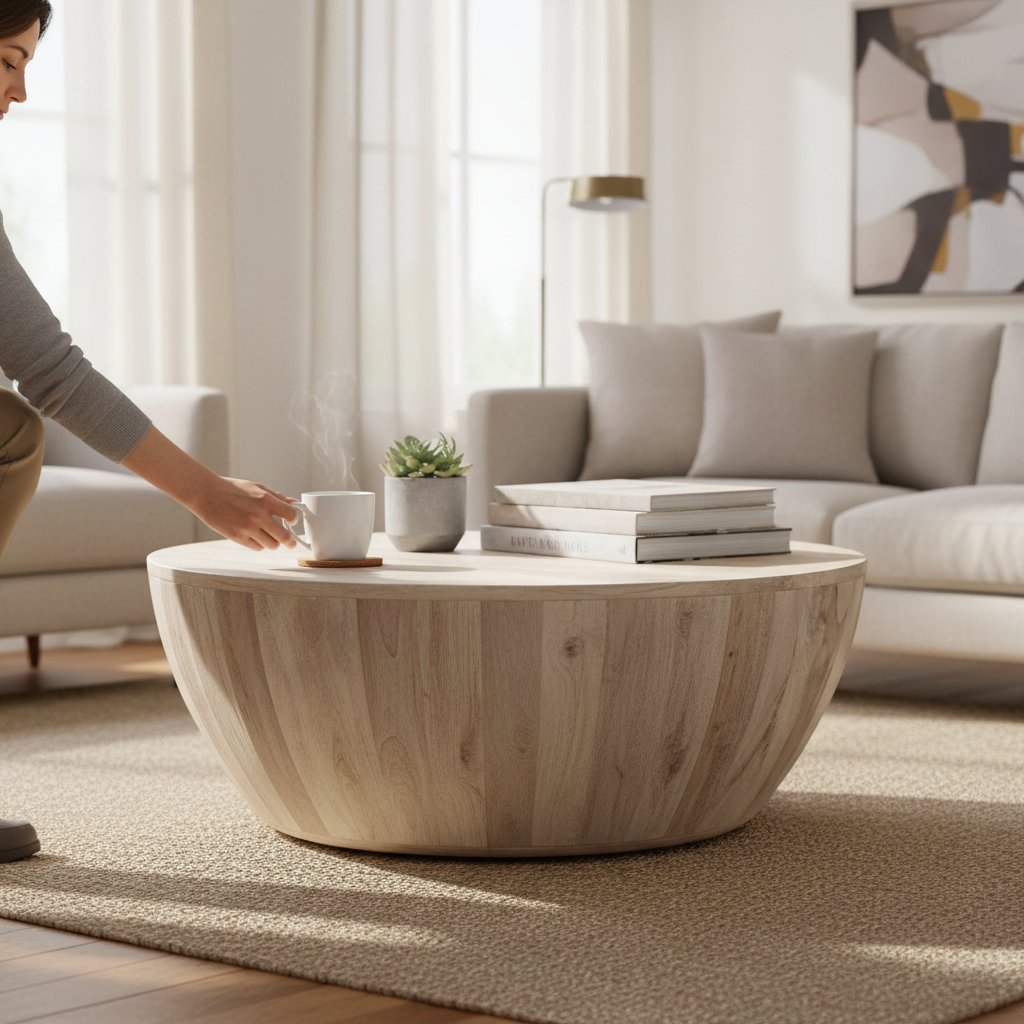 Wooden Handicraft Side Drum Coffee-Sofa Central Table