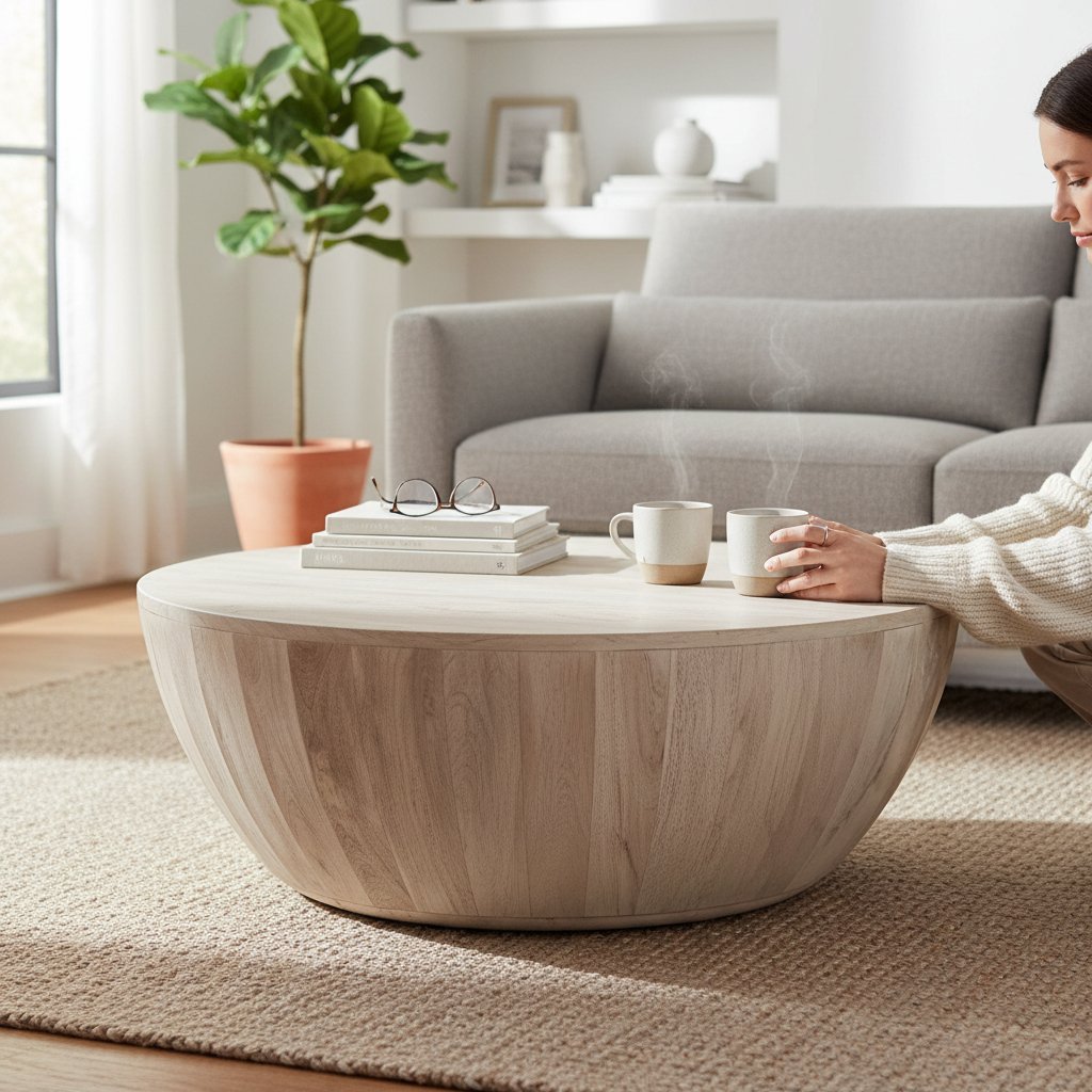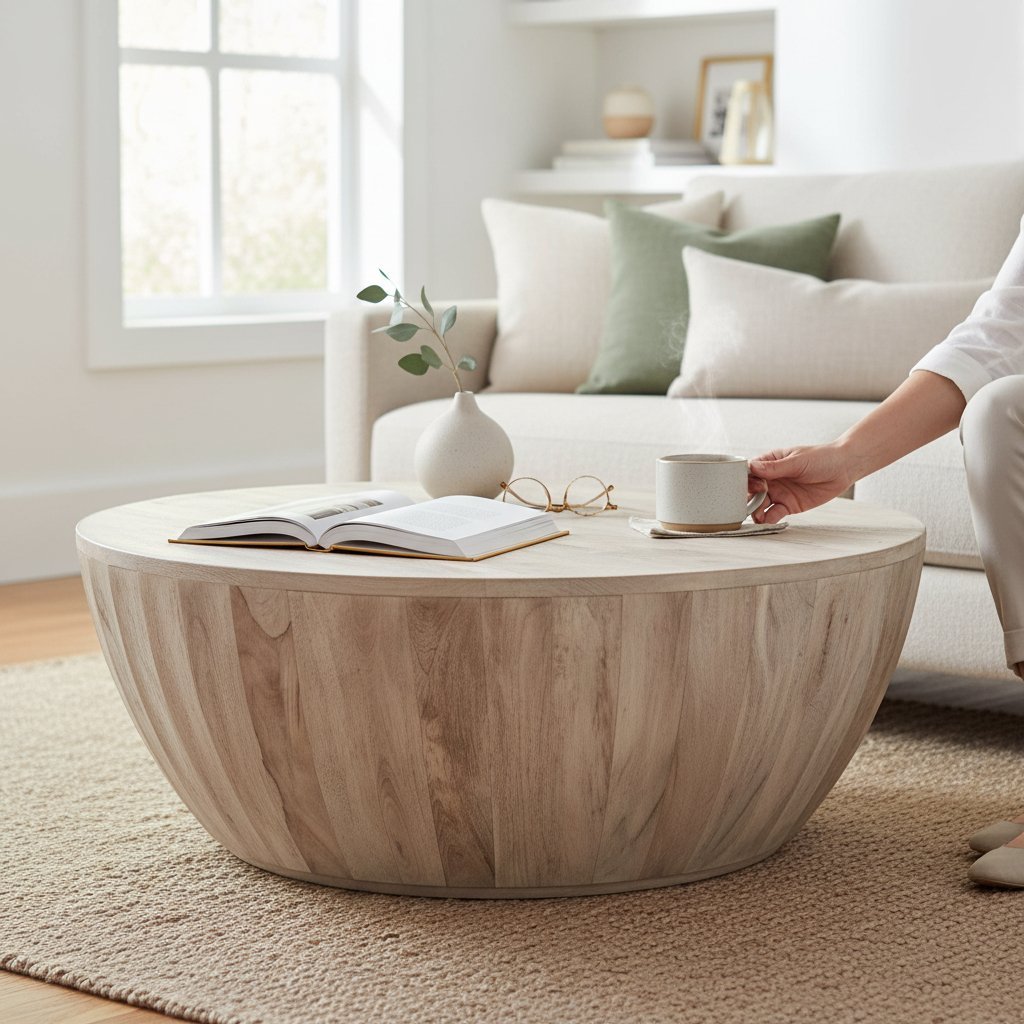 This round shaped wooden drum table can bring a style and class to your modern decor. Its unique design and interesting shape looks very attractive and charming. Transform your setting into a casual space by adding this coffee table with your favorite set of chairs.