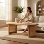 Solid Wood Round Drum Coffee Table – Walnut Finish