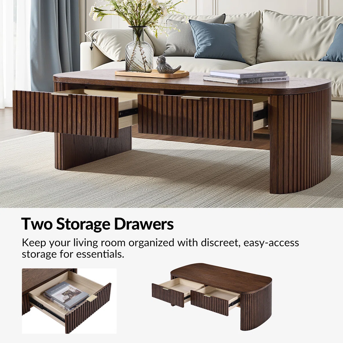 Home Coffee Table Aurelian Flute Storage Coffee Table