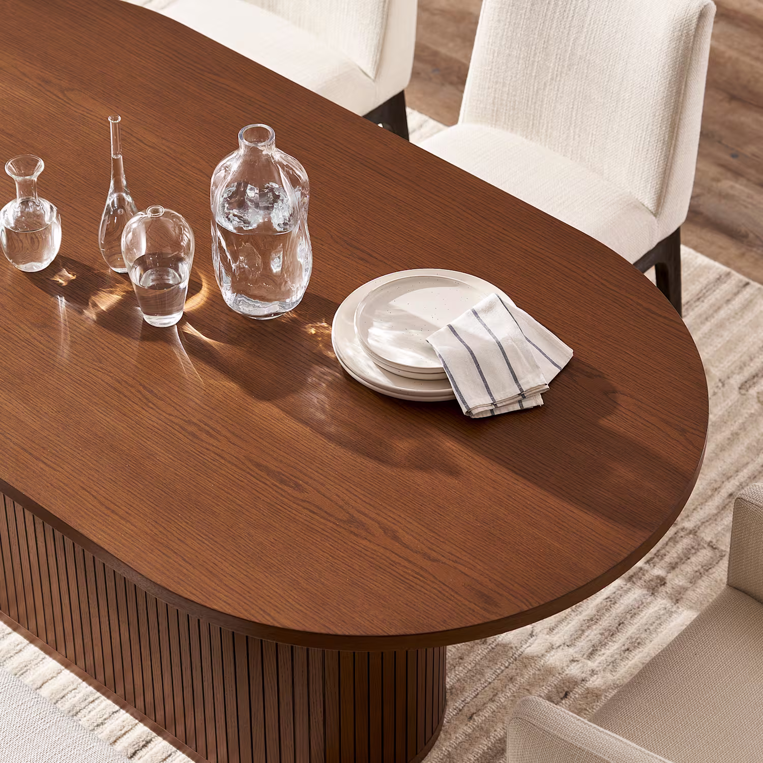 Wooden Dining Table with Ribbed Panel Base and 6 Chairs