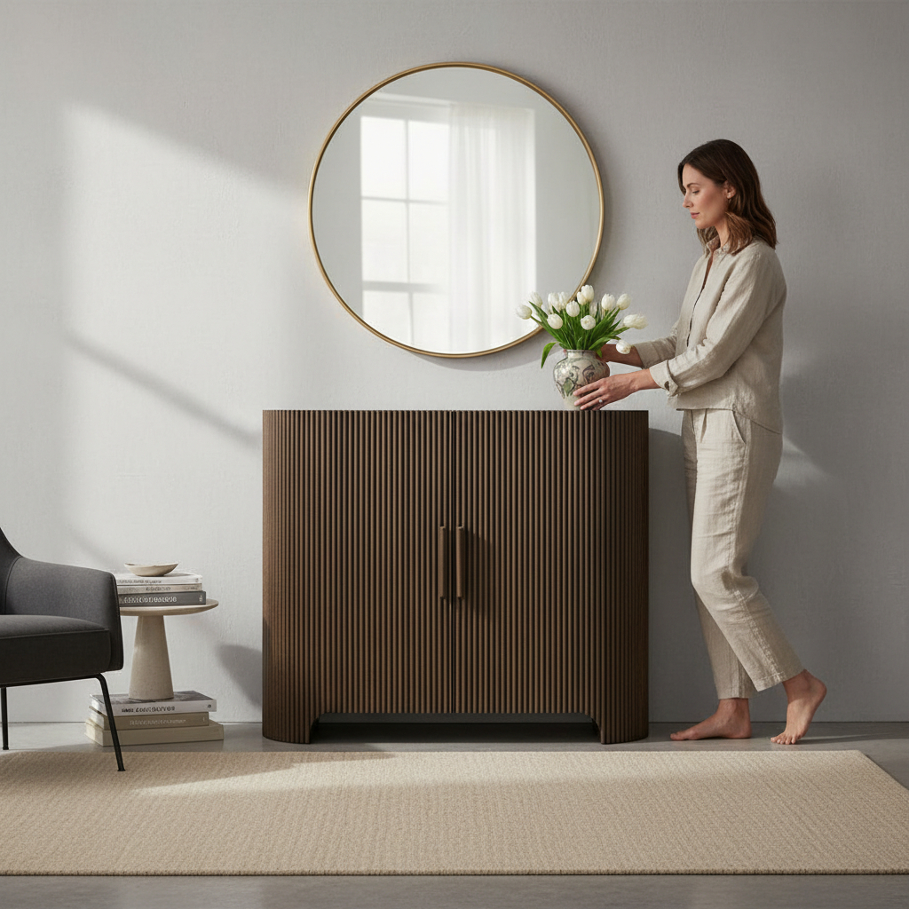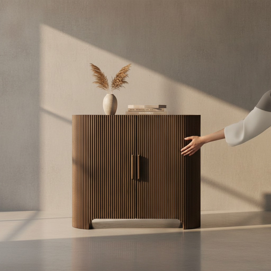 Modern Wooden Sideboard with Ribbed Doors Drawers