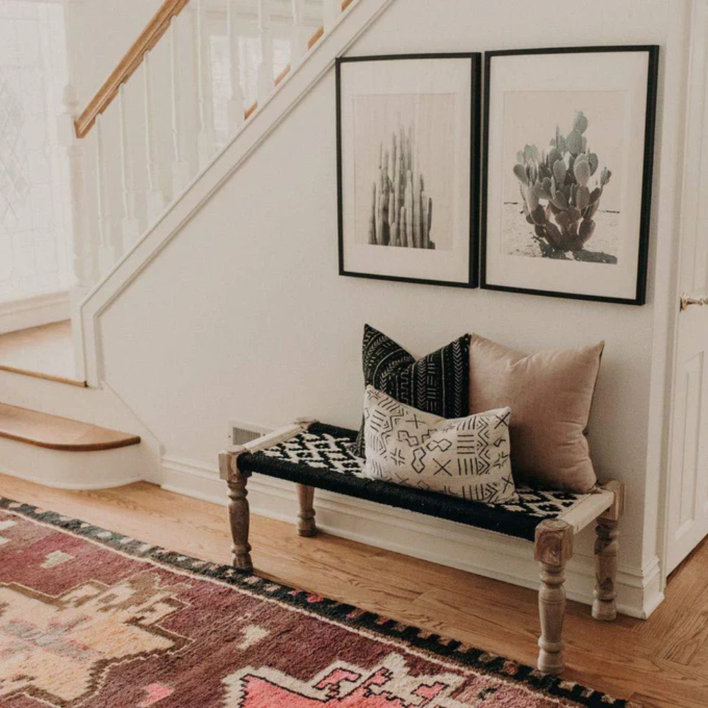 Brand : Vm Antique Decor Material : Wood Frame And Jute Rope Dimension :- Small Size-L 153 X W 64 X H 38 (cm) Large Size-L 181 X W 76 X H 46 (cm) Finish : Natural Wood Finish Colour : Beige Base With Multicolor Weave Assembly : Assembly Required Country of Origin : India Care : Clean Surfaces With a Dry Cloth.