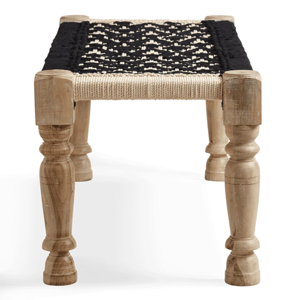 Black And Natural Rope Charpai Bench