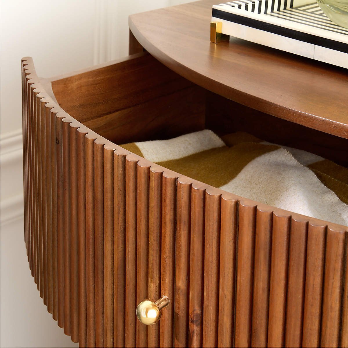 Fluted Wooden Bedside Table