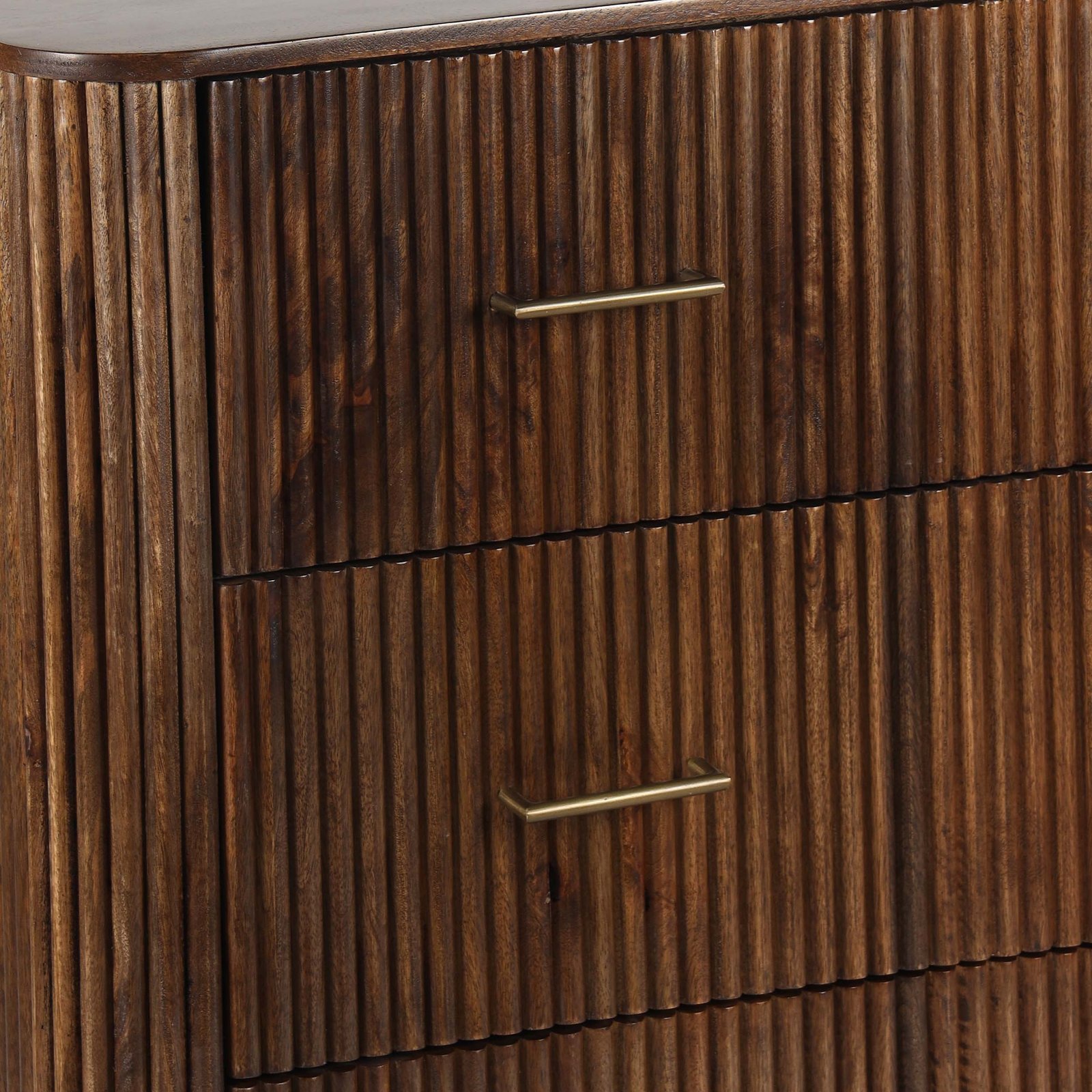 Compact Wooden Sideboard with Ribbed Doors and Black Marble Top