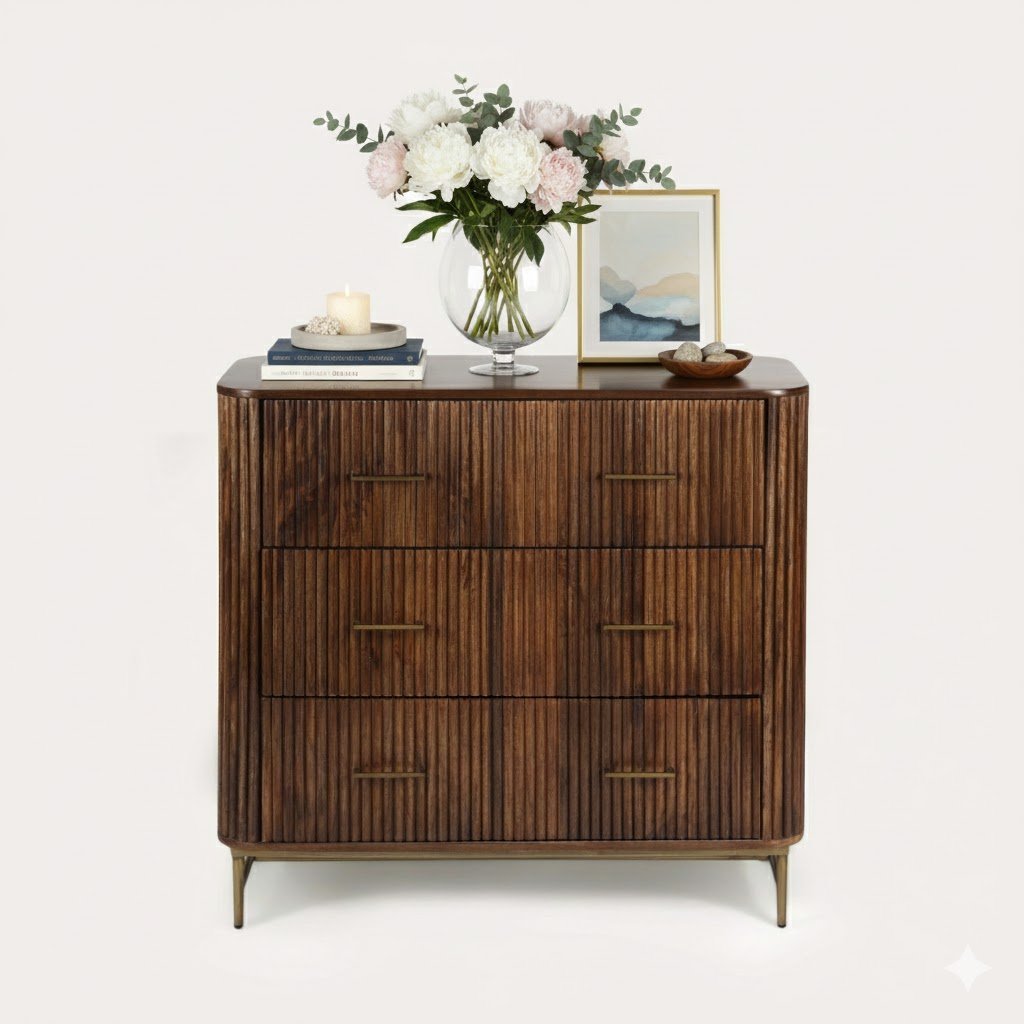 This compact wooden sideboard is the perfect blend of style and practicality. Designed with elegant ribbed doors and a luxurious black marble top, it adds a modern yet timeless touch to any interior. The spacious cupboard with shelving inside provides ample storage for dinnerware, glassware, or everyday essentials, while its sleek design makes it suitable for smaller dining rooms, living areas, or hallways. A versatile piece that enhances both functionality and décor.