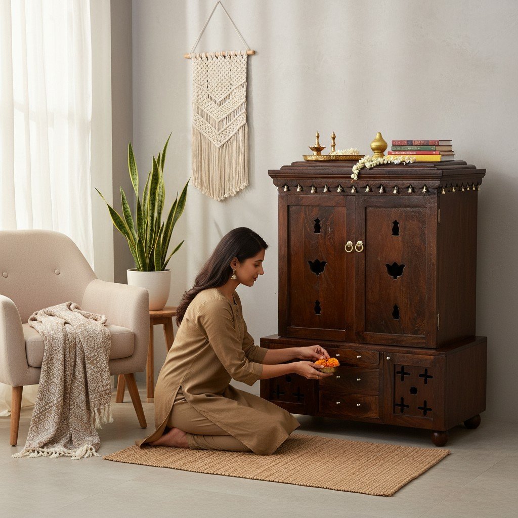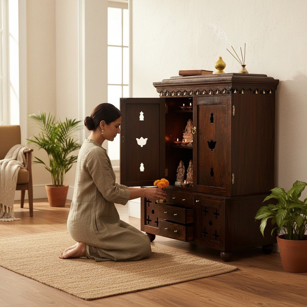 Wooden Temple Pooja Mandir Decor With Cabinet