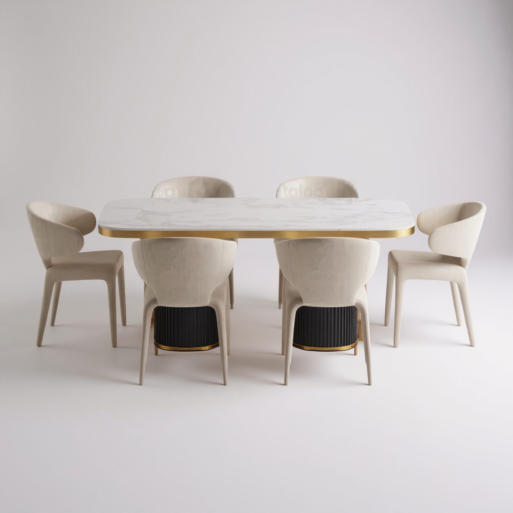 Elegant Rectangular Marble Dining Set
