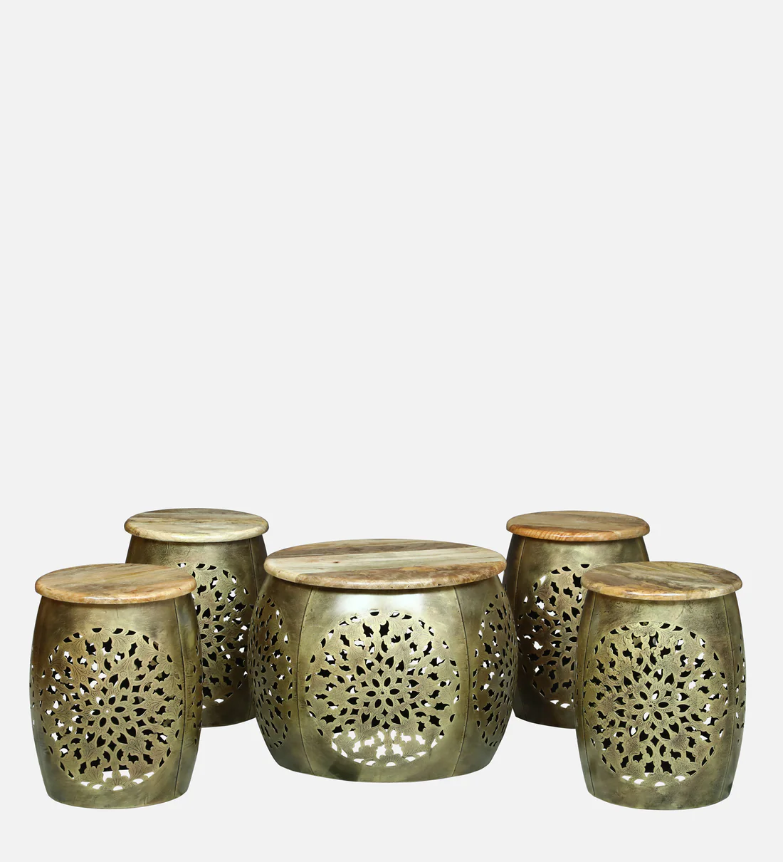 Home Chair Stool Ethnic Floral Design Nesting Coffee Table Set – Set of 5
