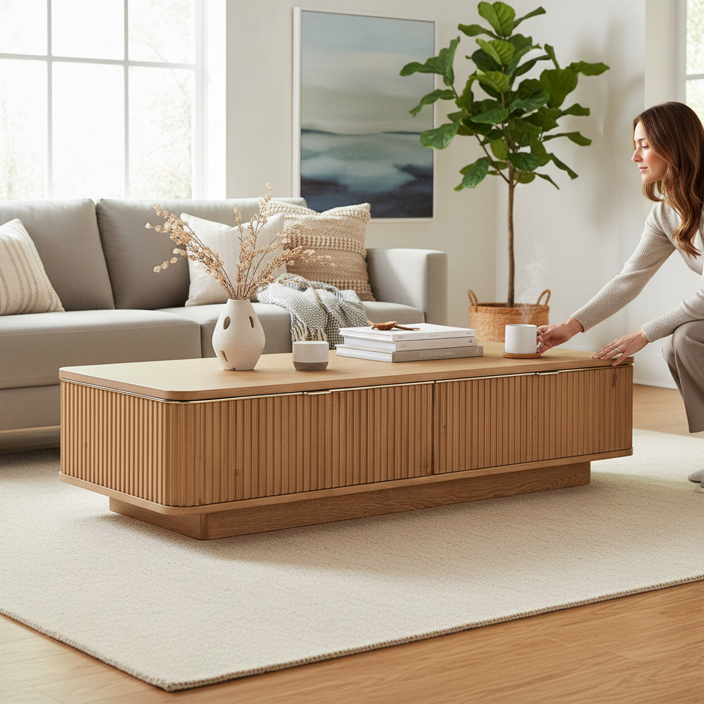 Home Coffee Table Fluted Wood Rectangular Coffee Table