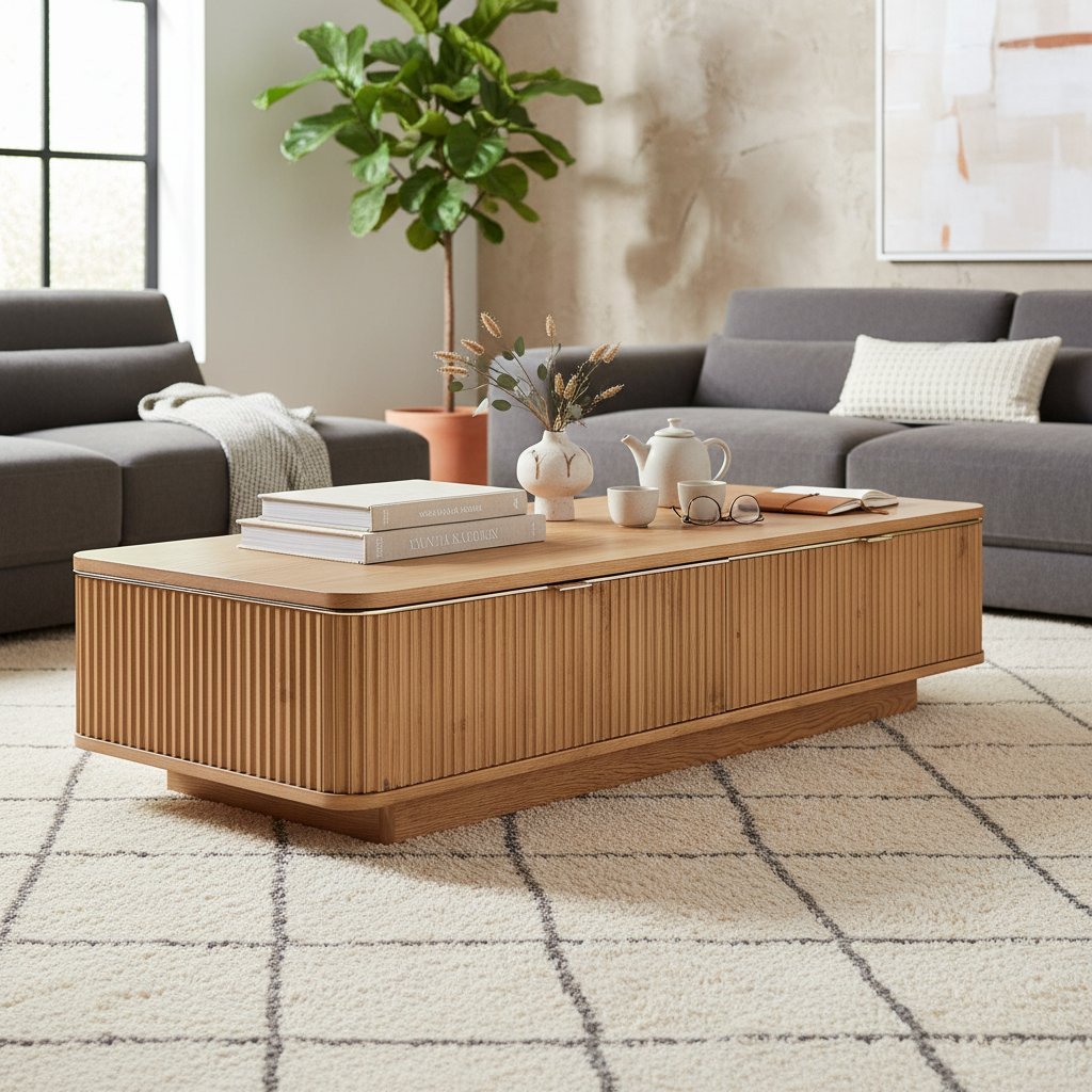 Home Coffee Table Fluted Wood Rectangular Coffee Table