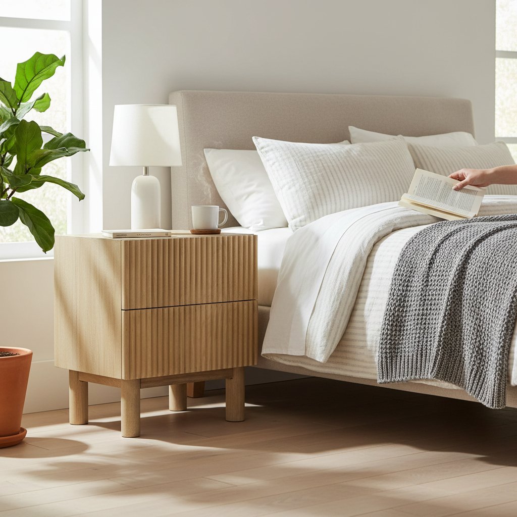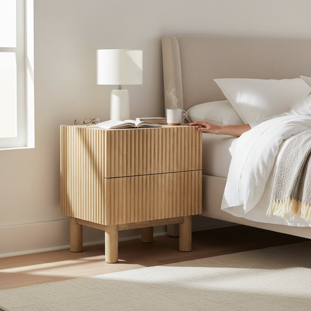 Fluted Wooden Bedside Table