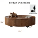 Solid Wood Round Drum Coffee Table – Walnut Finish
