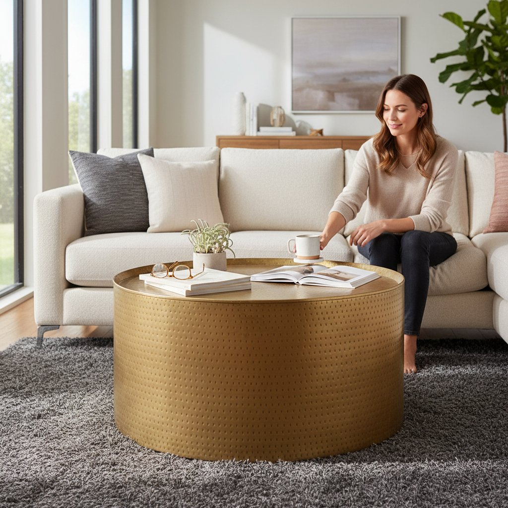 Home Coffee Table Luxury Brass Finish Round Coffee Table