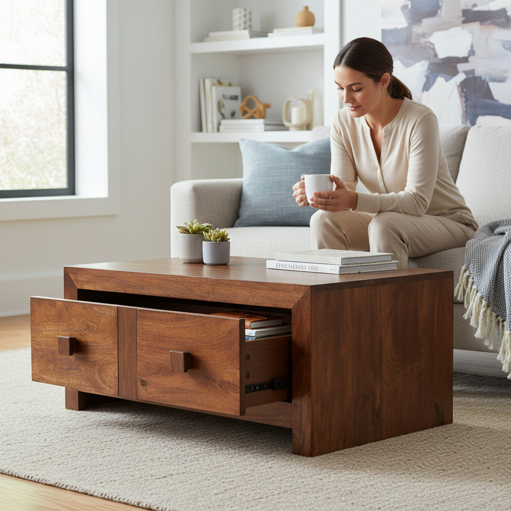 Home Coffee Table Mango Small 4-Drawer Coffee Table