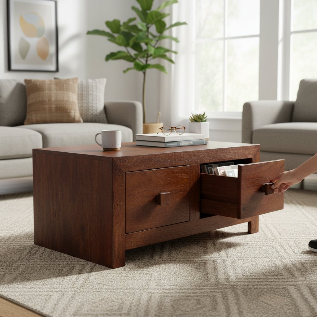 Home Coffee Table Mango Small 4-Drawer Coffee Table