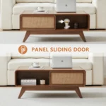 Wooden Coffee Table with Sliding Doors & Open Shelf