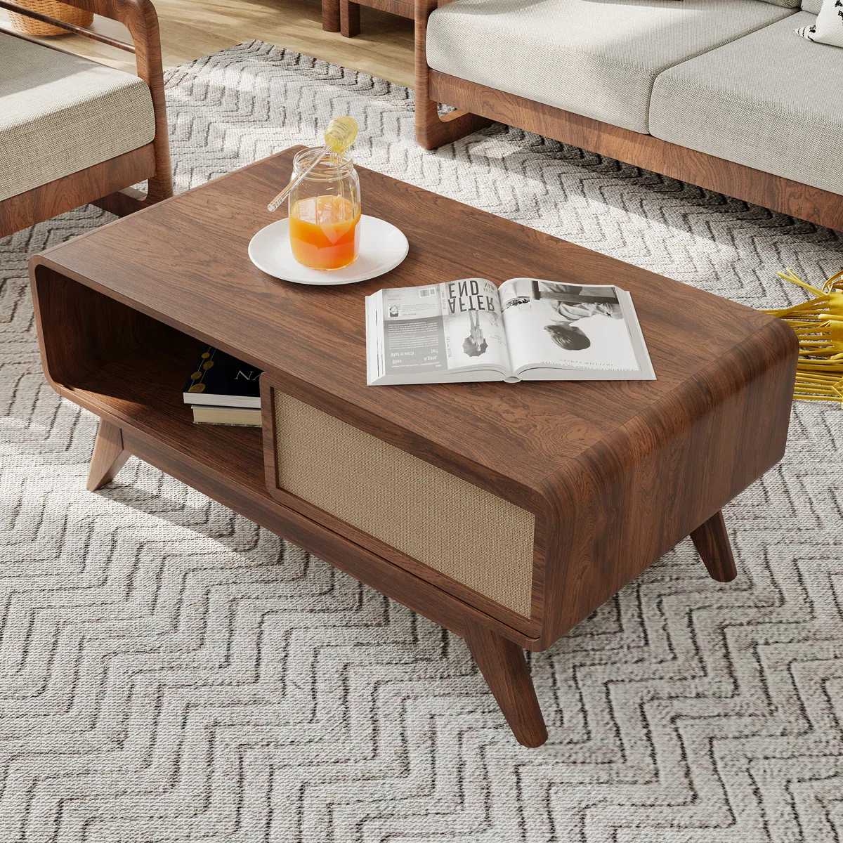 Home Coffee Table Wooden Coffee Table with Sliding Door Storage