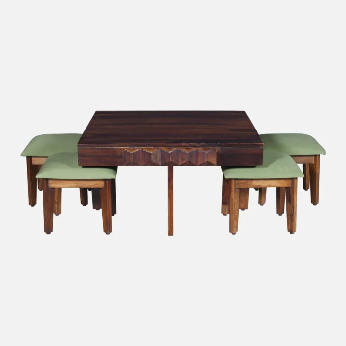 Solid Sheesham Wood Coffee Table With 4 Nesting Stools