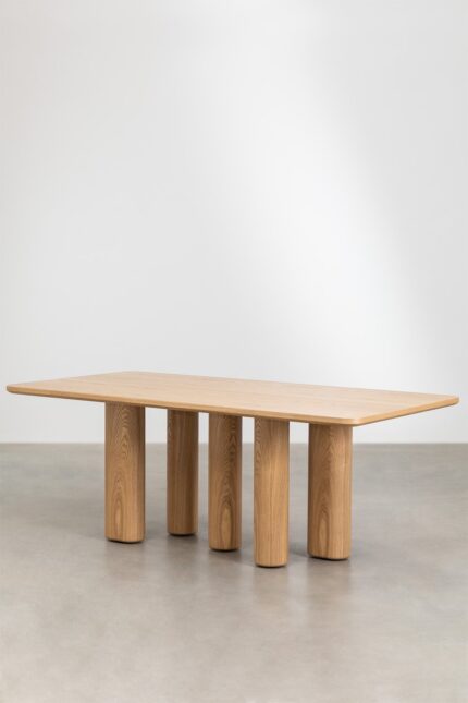 This contemporary dining set is designed to bring elegance and comfort to your home. The rectangular wooden dining table features a ribbed panel base and a smooth finish, combining durability with modern style. Accompanied by six upholstered chairs with curved backs and cushioned seats, the set provides both support and sophistication, making it perfect for everyday meals or special gatherings.